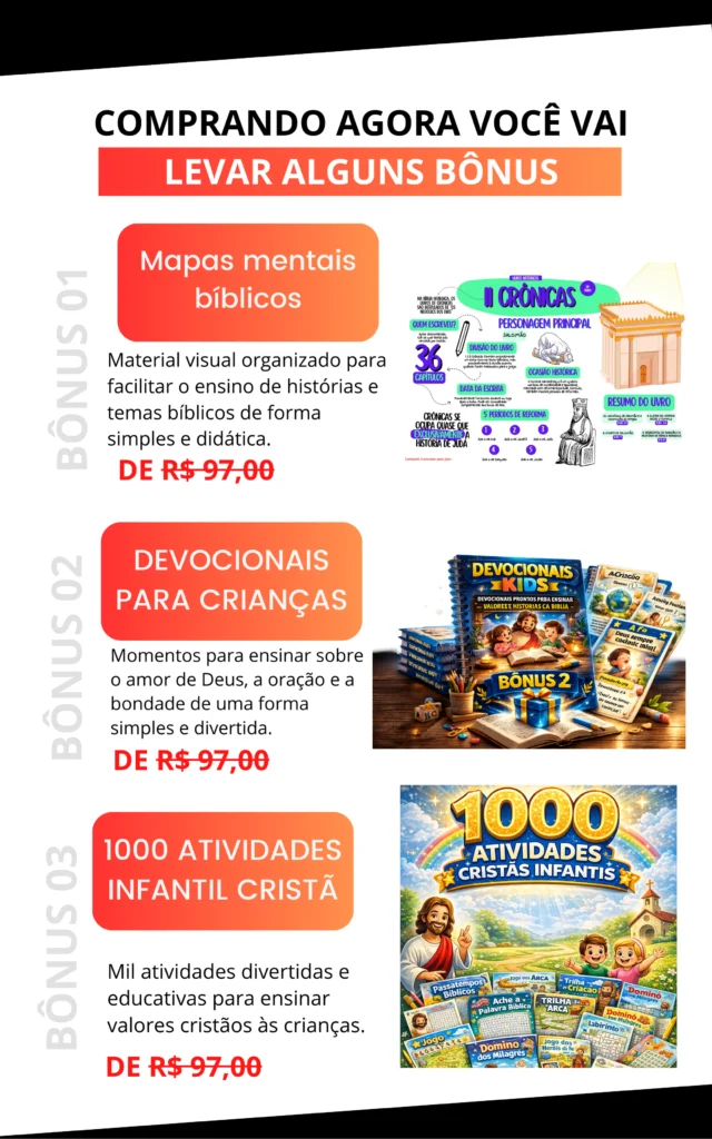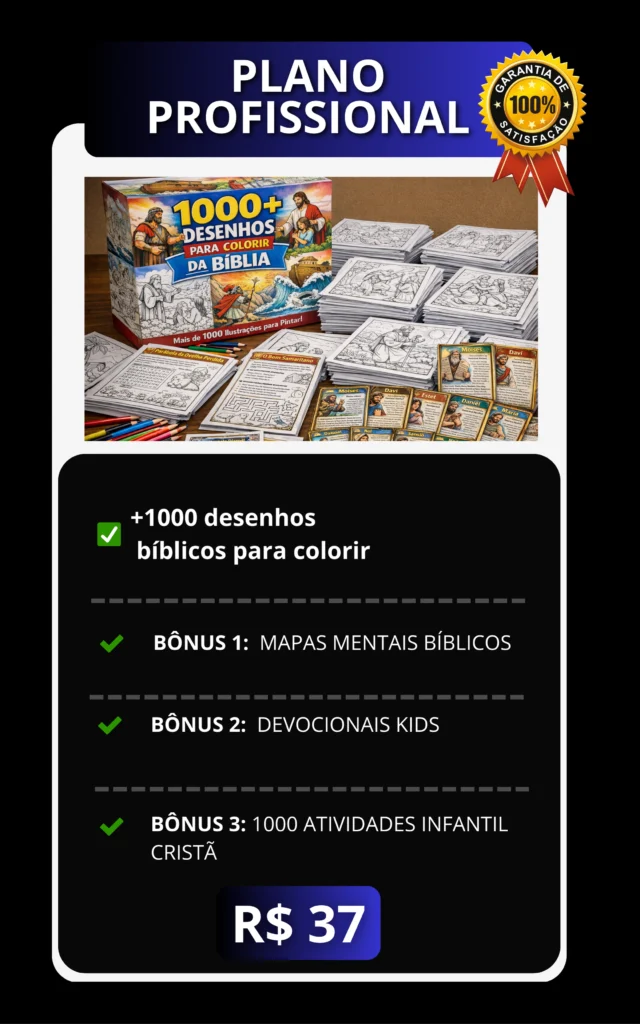 Inclui mais de 2000 conteudos para colorir da Bíblia, atividades educativas e material cristão para crianças.